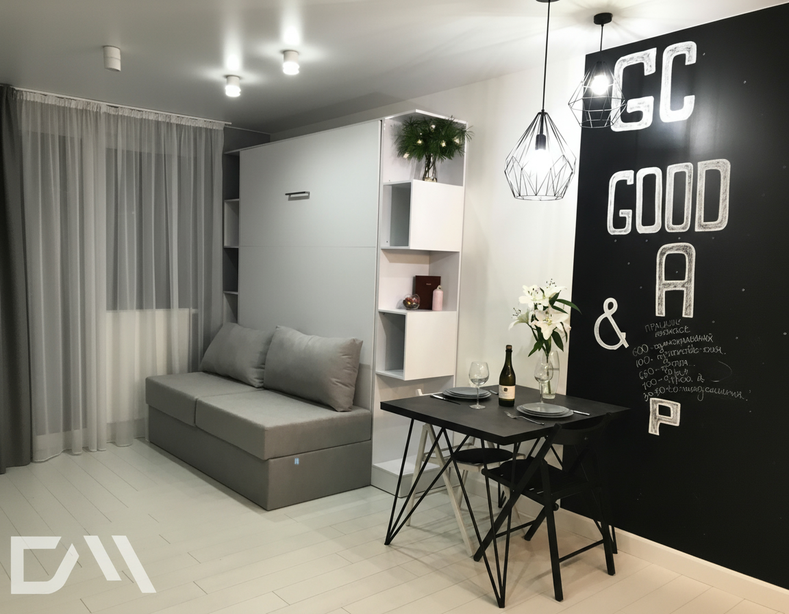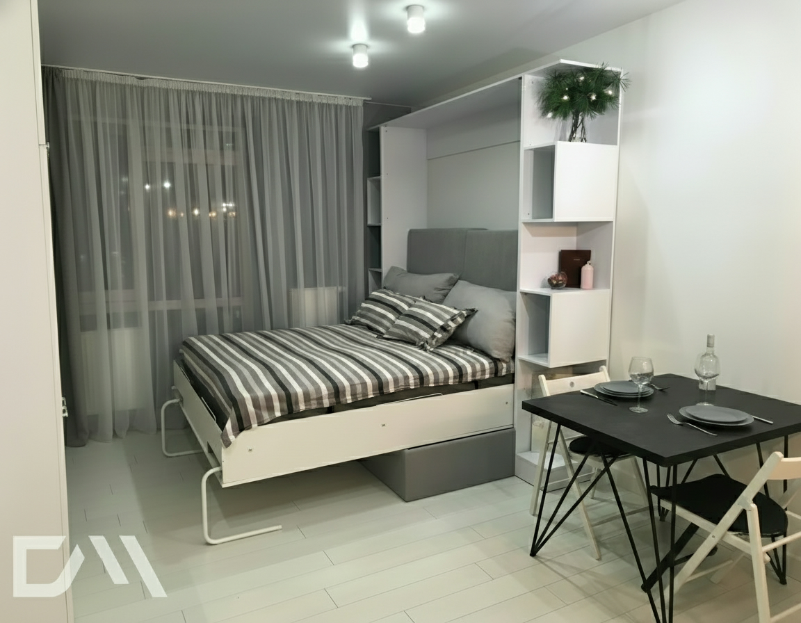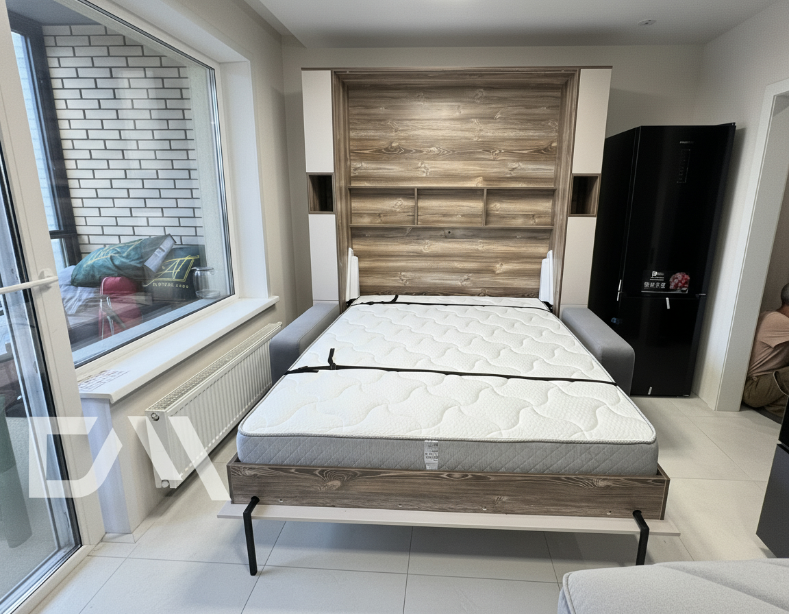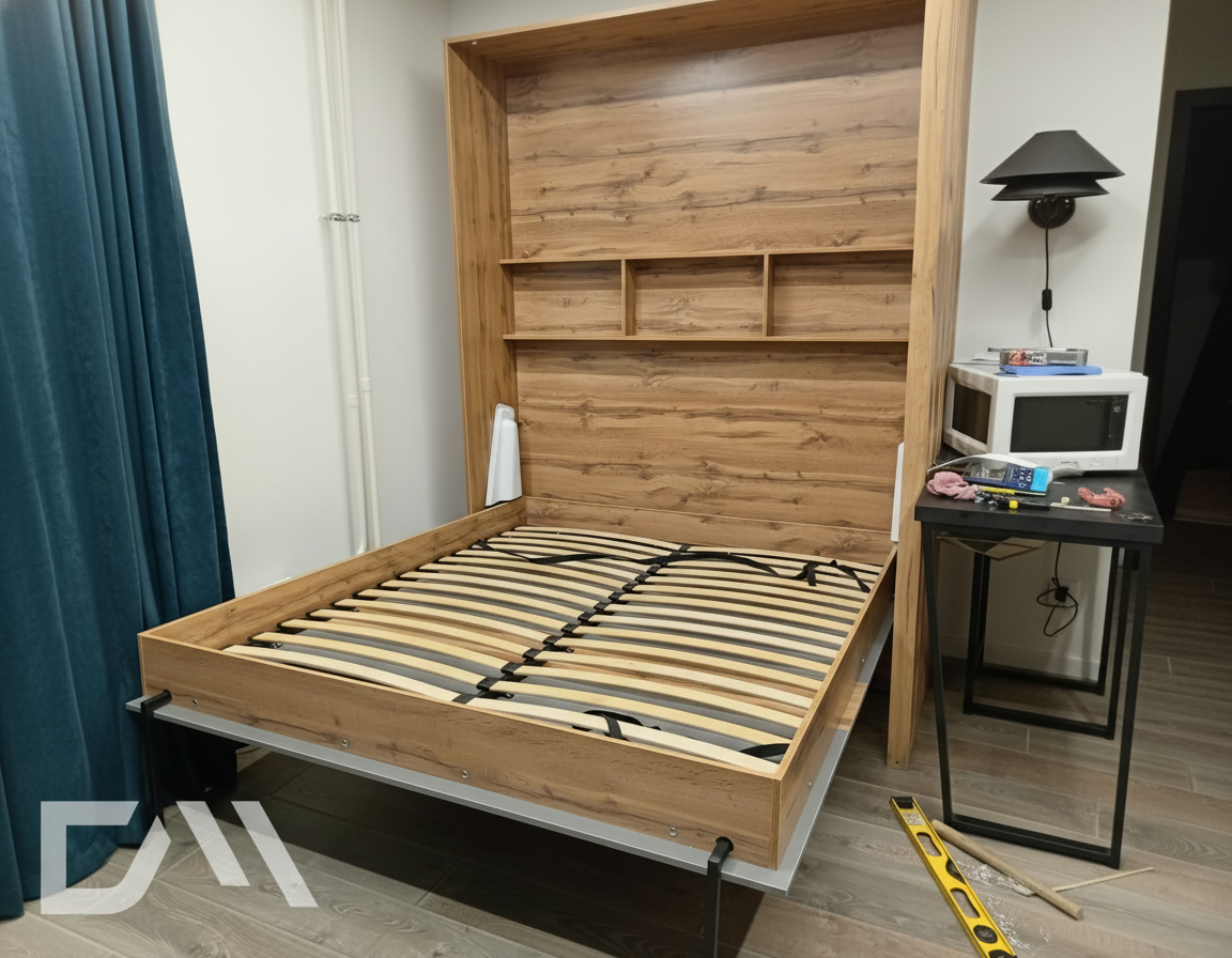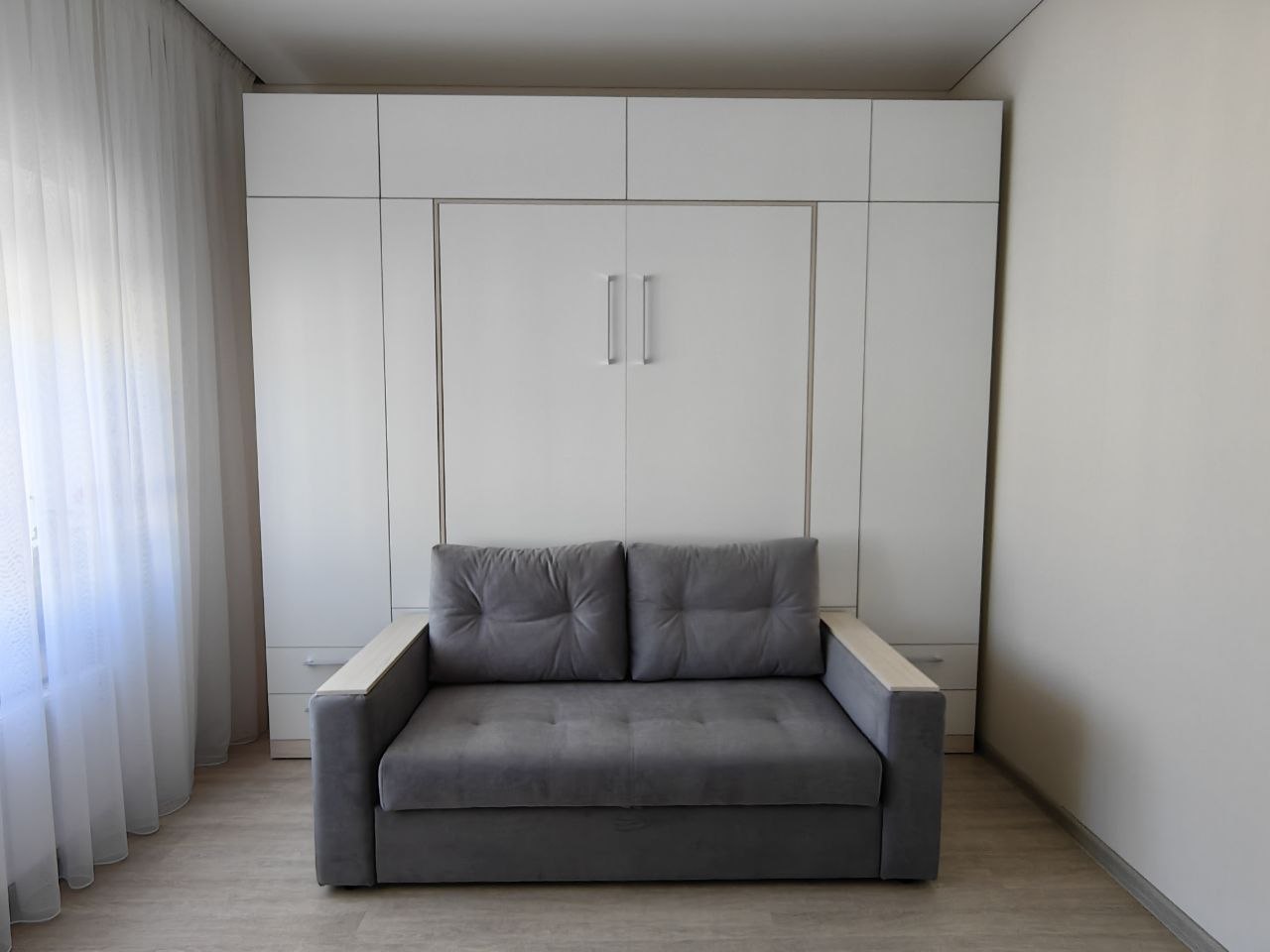 - Шкаф-кровать с диваном предоставляет удобство использования двух предметов мебели в одном. Это особенно полезно для помещений с ограниченным пространством, так как она позволяет максимально эффективно использовать доступное пространство.