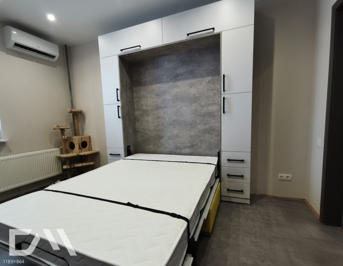- Шкаф-кровать спроектирована с учетом безопасности детей и домашних животных. Газлифты предотвращают случайное открытие или закрытие кровати.
